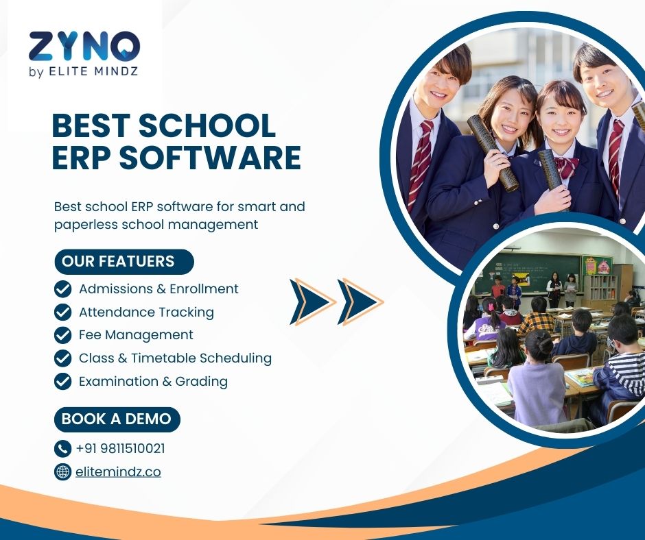 Choosing the best school ERP software helps educational institutions streamline academic and administrative tasks, improve communication with parents, and automate daily operations. ZYNO by Elite Mindz is a powerful, cloud-based solution designed to centralize processes such as admissions, attendance tracking, timetable scheduling, fee management, examinations, and reporting—all from one intuitive dashboard.